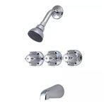 Three Canopy Handle Tub & Shower Faucet Trim, 11" Centers, 1/2" IPS Inlets, Replaceable Seats, Polished Chrome