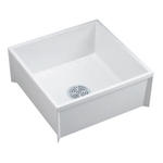 Molded Stone Mop Service Basin, Square, With Integral Drain, White, 24" x 24" x 10"