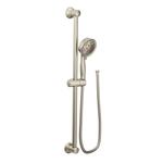 Plumbing > Faucets & Accessories > Handheld Showers > Moen > Eco-Performance Four-Function Handheld Shower, With Slide Bar, 3867 Series